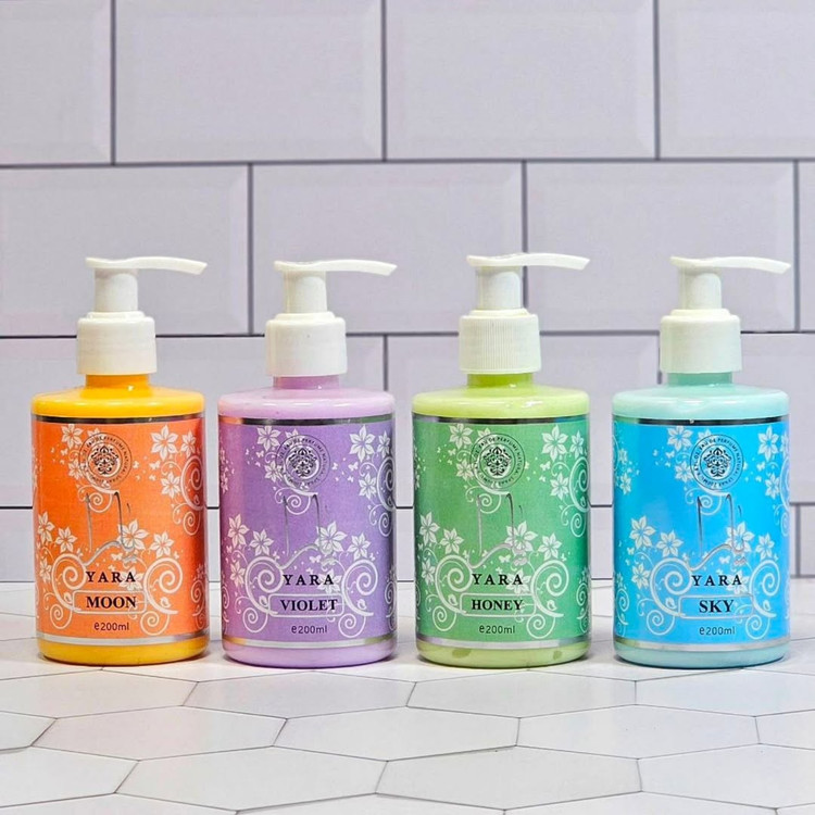 لوسیون محبوب یارا لوسیون بدن YARA حاوی ترکیبات مرطوب کننده و رایحه دلپذیر دارای بافت نرم و سبک آبرسان و مرطوب کننده روشن کننده یکدست کننده رنگ پوست رفع ترک و خشکی پوست دارای رایحه های دلپذیر تاریخ انقضا محصول : 2027 ساخت چین ۱۲ ساعت ماندگاری چطور مصرف کنیم مقدار مناسبی از محصول را روی پوست صورت یا بدن ریخته و ماساژ دهید تا جذب شود. لطفا دقت کنید • پیش از اولین مصرف، مقداری از لوسیون را روی پوست بزنید و سپس در صورت نداشتن آلرژی از آن استفاده نمایید. • در جای خشک و خنک و دور از نور مستقیم خورشید قرار دهید.