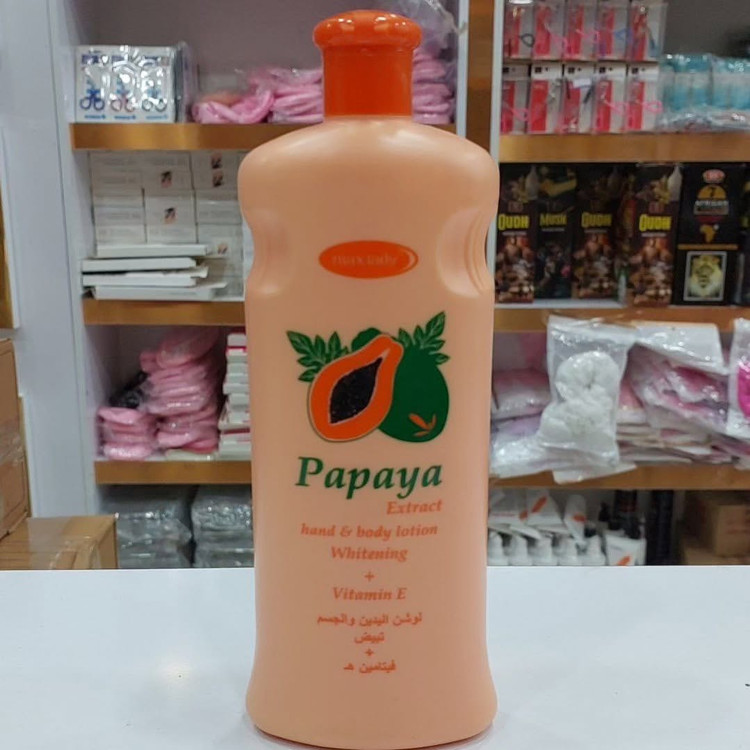 لوسیون پاپایا سفیدکننده دست و بدن حجم حاوی عصاره پاپایا حاوی ویتامین E. نرم کننده و مرطوب کننده بدن شاداب کننده پوست روشن کننده و سفید کننده پوست دارای بافت سبک و زودجذب رفع خشکی و کم آبی